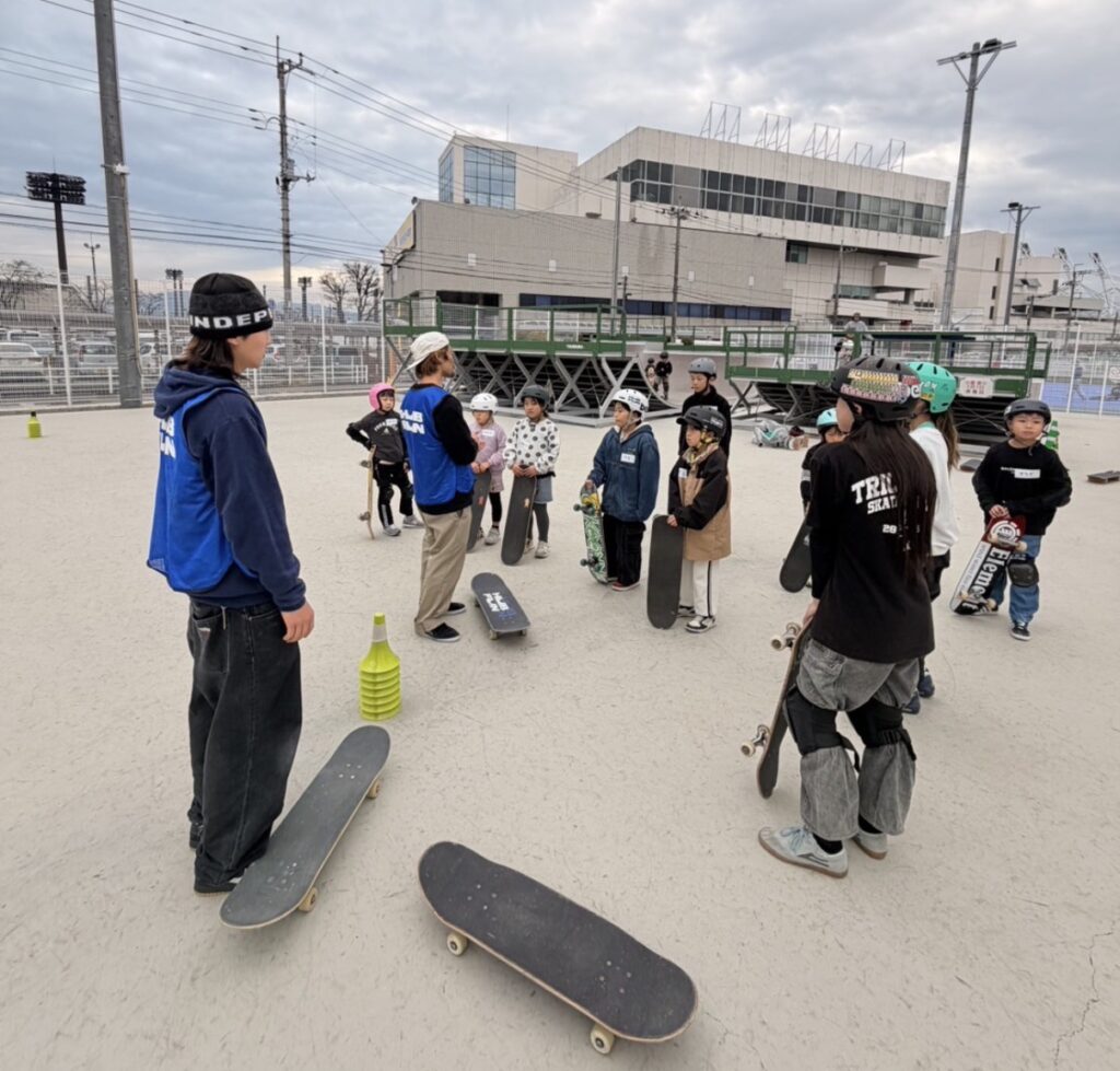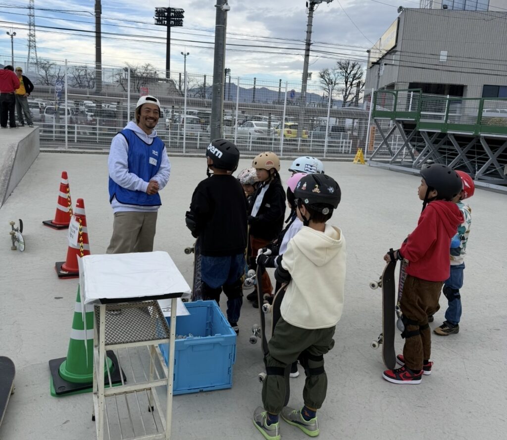 今回は参加費無料・市外参加OKということもあり、 募集開始後すぐに定員に達し、 スケートボードスクールへの高い需要を改めて実感する機会となりました。